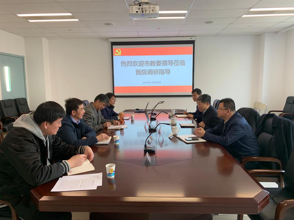 12月9日下午,市政府教育督导室副局级督学闫国梁、市教委体美劳教育处处长张华泉一行莅临我院,通过座谈、实地走访等方式调研指导学院工作。
