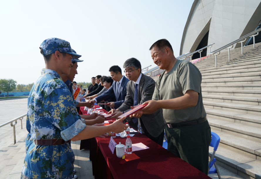 上午九时,典礼在庄严的国歌中拉开序幕,同学们以饱满的热情、昂扬的斗志、威武的军姿进行了分列式会操、擒敌拳、匕首操和综合战斗课目汇报表演,展示了新时代大学生朝气蓬勃、意气风发的精神风貌。汇演后,天津仪仗精英军事训练基地主任于祥杰宣布表彰决定,李克敏、张欣等领导为获奖的连队和个人颁发锦旗和证书。