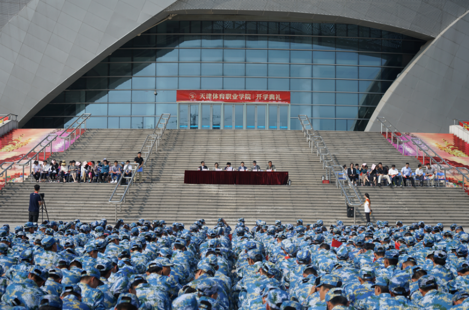 9月30日上午,体职院2019级新生开学典礼暨军训汇报表演汇演在团泊体育中心自行车馆前广场隆重举行。市体育局党委书记、局长李克敏,市体育局党委委员、副局长张欣,市体育局宣教法规处处长雷静,天津仪仗精英军事训练基地主任于祥杰及学院领导班子成员出席典礼,学院全体教职员工和2019级全体新生参加。典礼由院党委书记王伟主持。