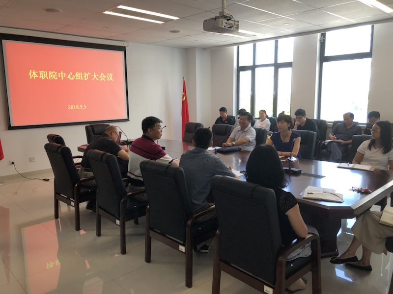 9月5日下午,体职院召开中心组扩大会,体育局党委副书记王洪出席,院党委书记王伟主持,院长刘钦龙,各系部、处室负责人、各支部书记参加。