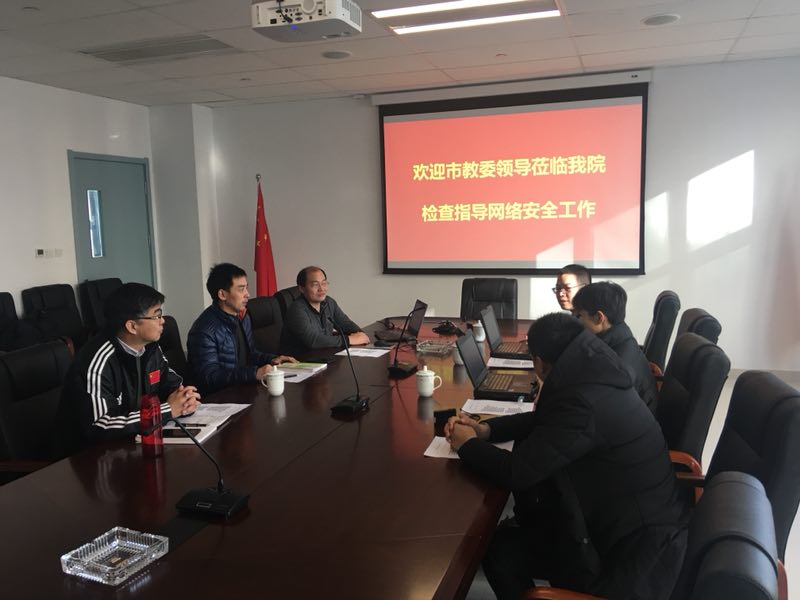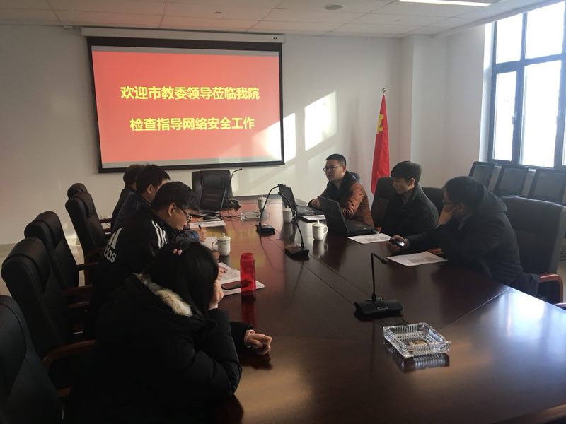 2018年1月18日上午,在KY开元集团官网入口二楼会议室,体职院接受市教委信息中心现场检查测试与指导网络信息安全方面的工作。党委书记王伟,副院长刘钦龙,图文信息中心负责人参加检查工作。