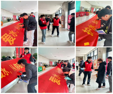 当天中午,院青协联合后勤保卫部于学院食堂开展了一场节水行动,让节水意识深入人心,号召更多青年成为绿色校园的守护者。