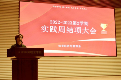 为深入贯彻落实党的二十大精神和习近平总书记关于职业教育的重要指示批示精神,推动产教融合,提升学生的学习素养与实践能力,体育经济与管理系对2021、2022级同学展开系列实践周活动,囊括电子竞技大赛、新媒体运营、商业计划书等多种形式,基于专业特点与培养方向进行定制化创新实践。5月26日,实践周总结大会在报告厅举行,系部负责人、全体专业老师、企业代表出席参加,大会由系党支部副书记主持,共同验收实践周成果并进行结项总结。