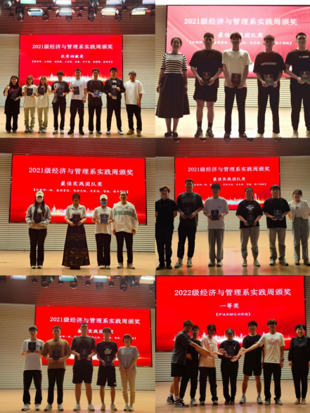 最后在大会现场对2021、2022级实践周中表现优异的组别进行表彰,颁发了“最佳实践团队奖”、“优秀助教奖”与商业计划书路演的一二三等奖和优秀奖共计17个团队奖项,至此经管系实践周考核圆满结束。本次实践周系列活动充分锻炼了同学们的实践动手能力与团队协作精神,提升了在实践中发现问题、分析问题、解决问题的能力,是对于实践教学的有效检验,为同学们进一步学习实践、提升就业能力打下了扎实的基础。