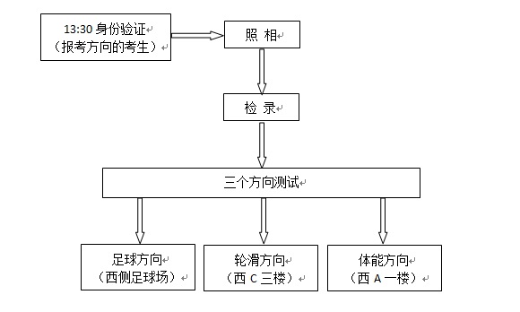 (4)专业考试时间:下午14:00 运动训练(足球、轮滑)、体育保健与康复专业(体能训练方向)【13:30分验证、拍照】
