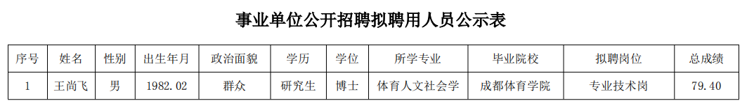 附:事业单位公开招聘拟聘用人员公示表