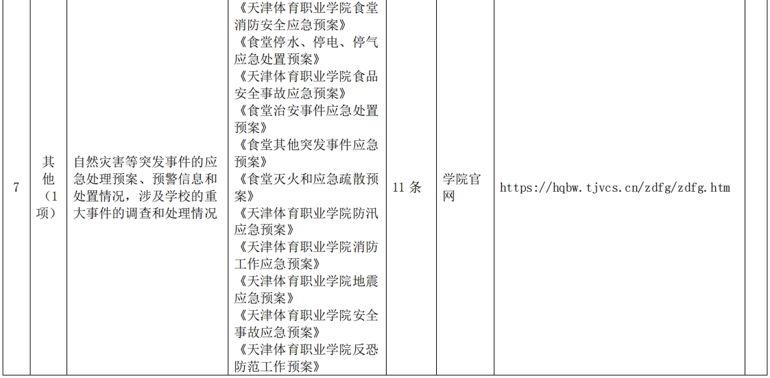7.公开自然灾害等突发事件的应急处理预案、预警信息和处置情况,包括:《KY开元集团官网入口防汛应急预案》《KY开元集团官网入口地震应急预案》《KY开元集团官网入口安全事故应急预案》《KY开元集团官网入口反恐防范工作预案》《KY开元集团官网入口食堂消防安全应急预案》《食堂停水、停电、停气应急处置预案》《KY开元集团官网入口食品安全事故应急预案》《食堂治安事件应急处置预案》《食堂其他突发事件应急预案》《食堂灭火和应急疏散预案》《KY开元集团官网入口消防工作应急预案》等。