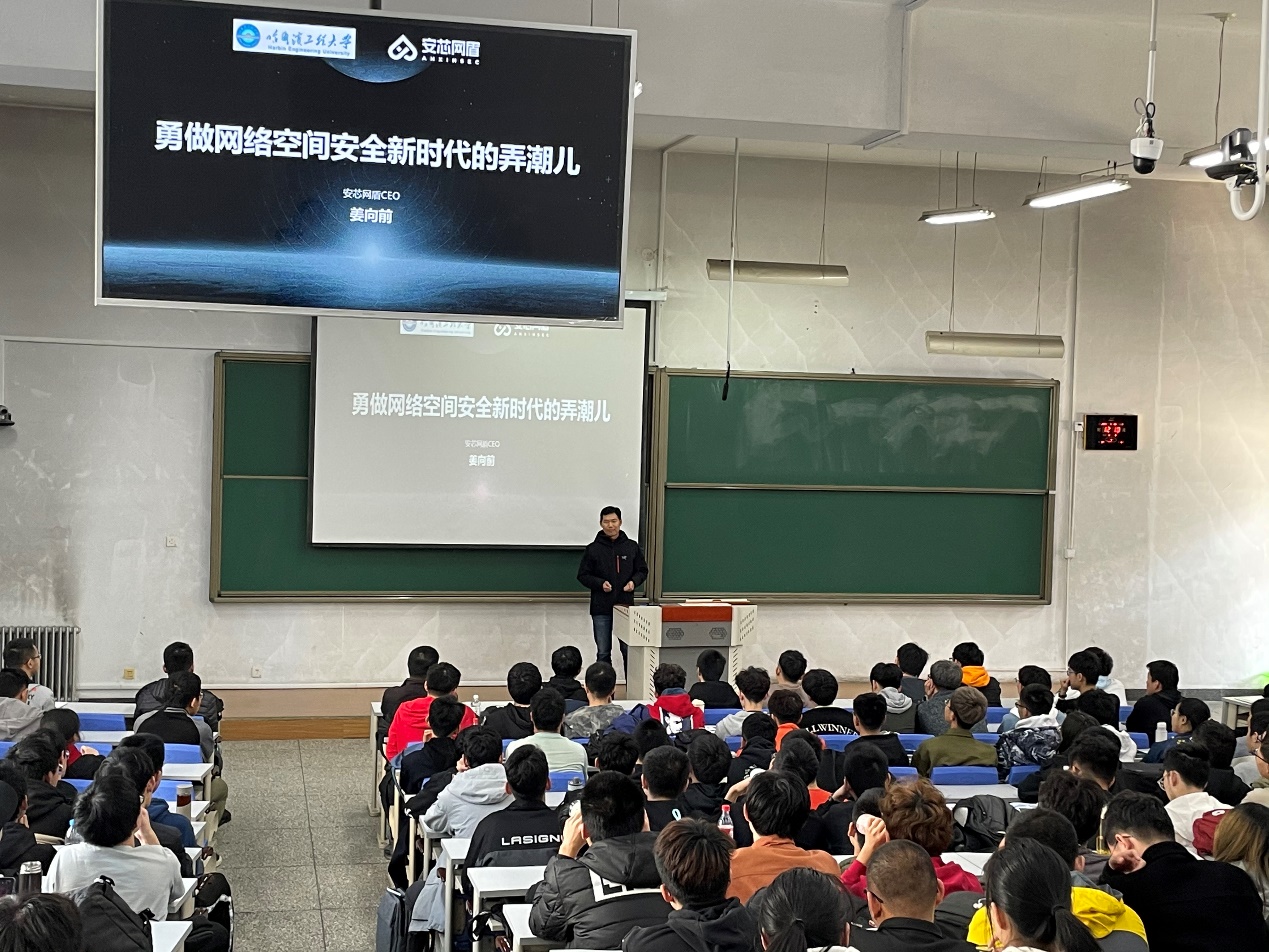 近日,计算机科学与技术学院校友、安芯网盾创始人兼CEO姜向前受邀在我校1#N101做《勇做网络空间安全新时代的弄潮儿》的专题讲座,同时,安芯网盾与学校将挂牌成立联合实验室。