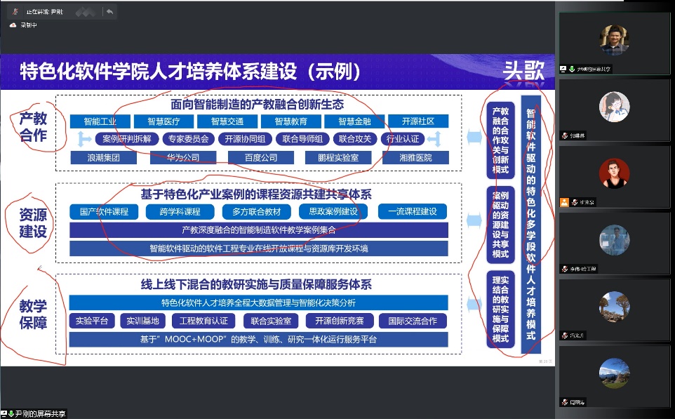 会上冯光升副院长介绍了目前特软学院建设推进的进展情况。学院老师针对betway官网目前采用的一些教学实验平台以及目前课程建设进展进行简单介绍。尹刚主任针对高校特色化课程与专业建设教学体系创新与应用展开讲解,重点讲解课程建设、专业建设、产教融合的问题关键,介绍了头歌在线课程建设与特色专业创新环境,针对特软学院人才培养体系建设进行深入剖析,针对目前学院所采用教学实验平台遇到的一些问题,演示头歌教学实验平台以提供解决方案。