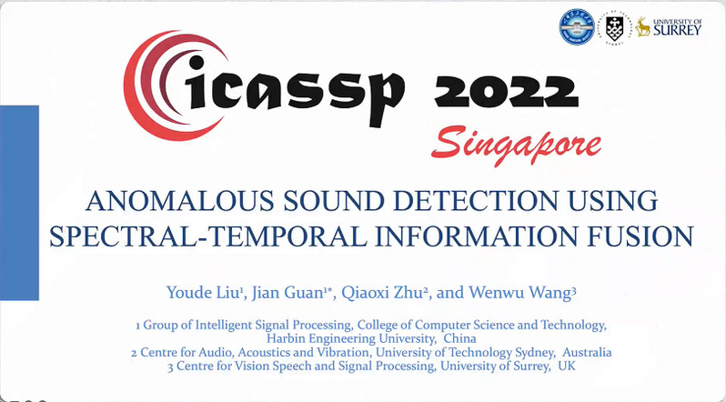 该论文入选音频信号处理领域顶级国际会议ICASSP 2022,是我校计算机学院嵌入式与物联网团队智能信号处理团队(Group of Intelligent Signal Process, GISP)与悉尼科技大学“音频声学与振动中心”及萨里大学“视觉语音信号处理中心”最新合作研究成果,提出了一种基于时频融合的自监督分类方法,通过时频域信息的融合互补,极大地提升了工业设备异常检测的性能和稳定性。