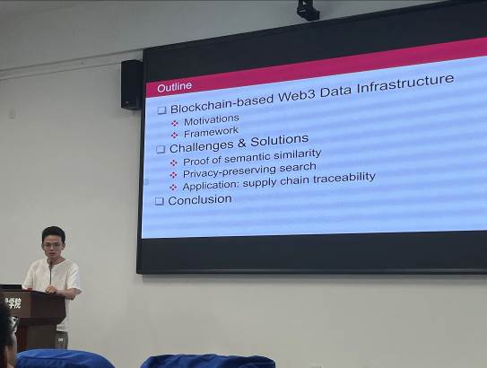 2023616日,计算机科学与技术学院青年科技协会和计算机学院研究生会在21B4127联合举行了青年科协活动。本次活动邀请香港理工大学江山老师以“Web3数字基础设施建设:机遇与挑战”为题作学术报告。青年科协张立国、吕宏武、玄世昌等青年教师和部分博士研究生、硕士研究生参加了此次活动,活动由玄世昌老师主持。