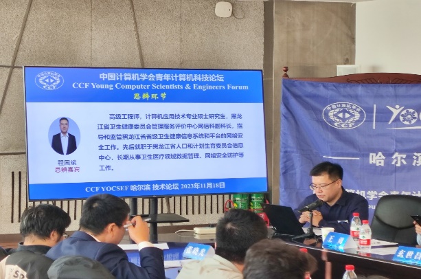 20231118日上午,学院青年科协在启航活动中心,协办了由中国计算机学会(CCF)主办,CCF YOCSEF哈尔滨学术委员会承办的技术论坛“数据要素市场化配置,路在何方?”。本次论坛邀请了来自高等院校、科研院所、行业企业等不同行业背景的30余名专家学者从多个角度进行了思辨和讨论。本次论坛由学院青年科协成员王勇、玄世昌老两位师担任执行主席,东北林业大学张春龙老师担任线上主席。